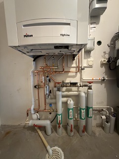 Milton HighLine 24 Combi Plus gaskedel og 100 l varmtvandsbeholder.Milton HighLine 24 Combi Plus gas heater with 100 l hot water tankMilton HighLine 24 Combi Plus med 100 l varmvattenberedare.