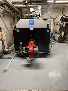 Komplet dampanlæg med tre-træks dampkedel, modulerende gasbrænder med frekvensstyret blæser, standard og kondenserende economiser (røggasvarmeveksler), sikkerhedssystem for 72 timer u-overvåget drift, fjern-overvågnings system, afblæsningstank og kondensattank.